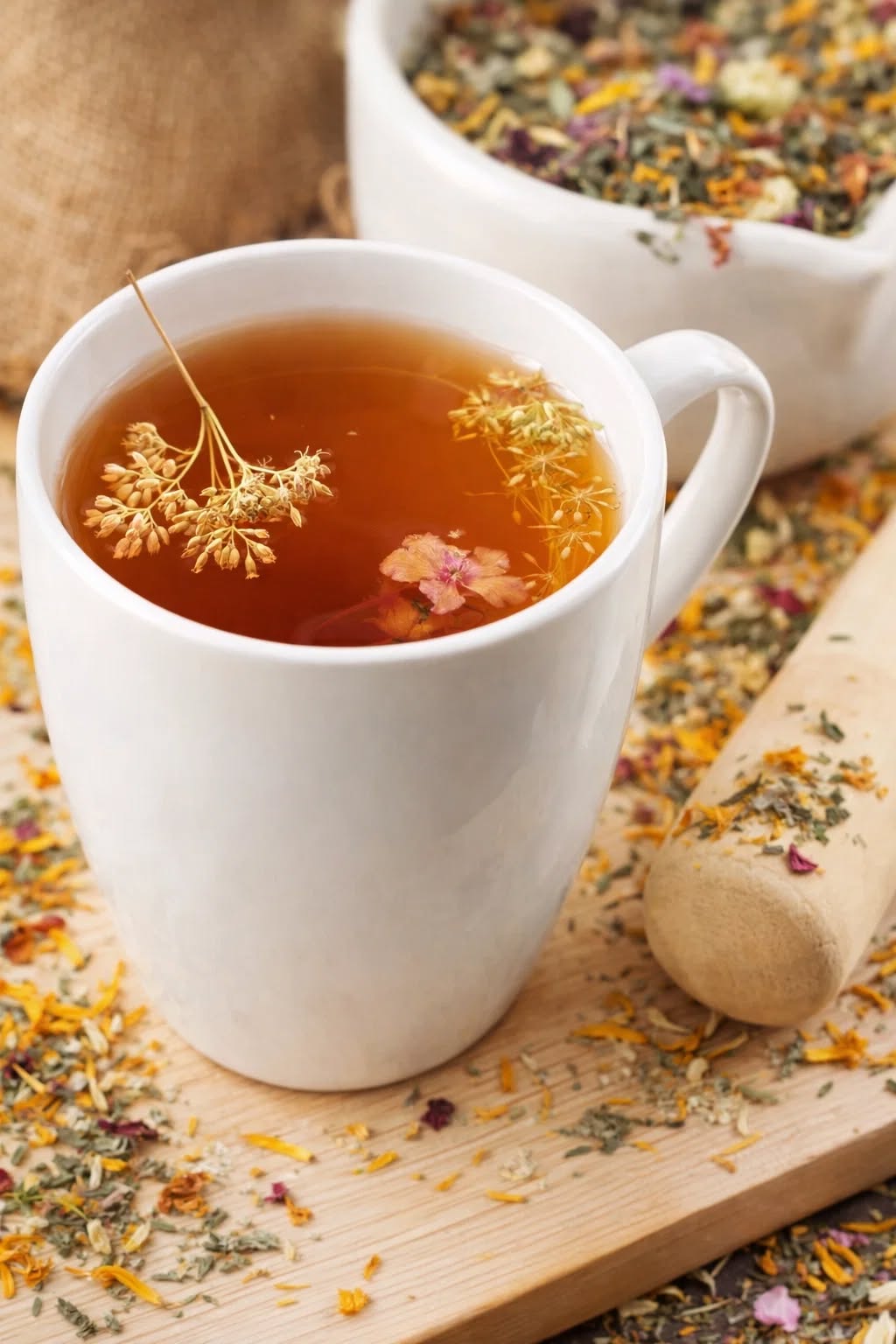 - Ввечері: 1 ст. л. суміші залити 0,5 л кип’ятку, настоювати 20 хв, процідити. Додати 1 ч. л. меду в стакан і випити після вечері. Більше нічого не їсти й не пити.