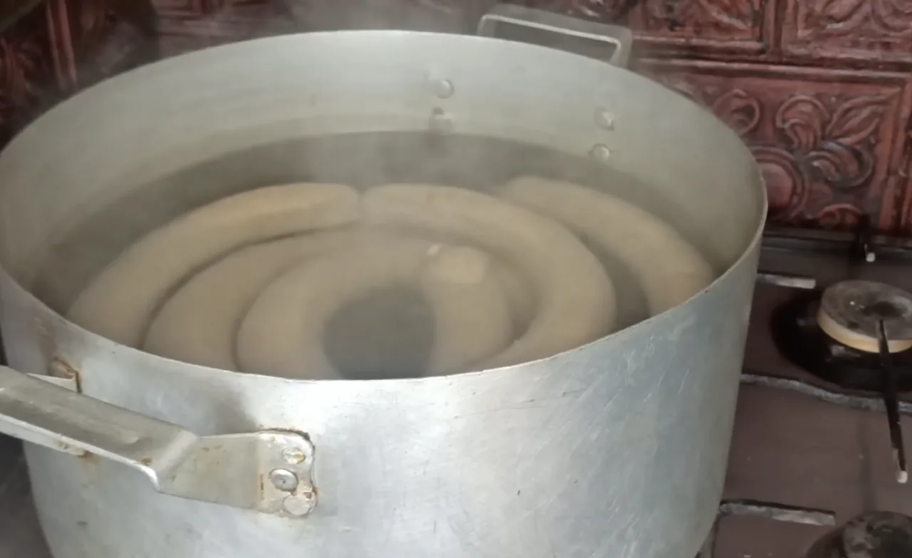 3. Під час варіння перевіряю, щоб ковбаска не пристала до дна, і проколюю місця з повітрям.