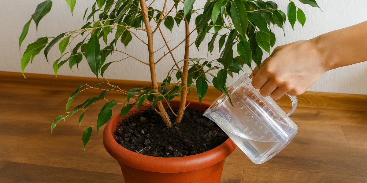 У період спокою я не поспішаю з добривами. Якщо бачу, що фікус добре почувається, не витягується і не жовтіє, я взагалі не підживлюю його до весни. Але коли рослина стоїть біля батареї або довго перебуває під штучним світлом, інколи даю дуже слабкий розчин комплексного добрива — приблизно раз на 4–5 тижнів. Це допомагає підтримати сили, але не стимулює активний ріст, який узимку не бажаний.
