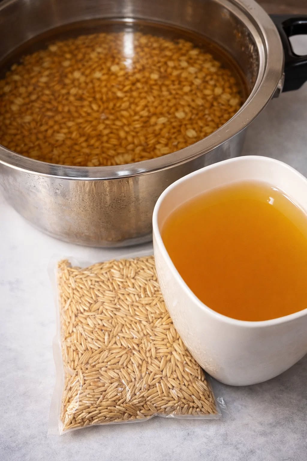 1. 1 ст. ложку неочищеного вівса залити на ніч 0,5 л води (краще фільтрованої). Якщо є схильність до підвищеного тиску — додати 1 ст. ложку перлової крупи.