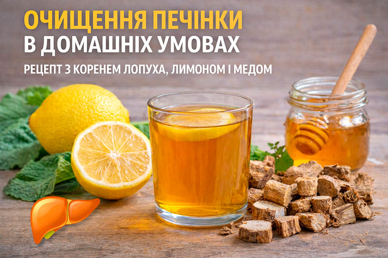 Йдеться про поєднання трьох натуральних компонентів: корінь лопуха, лимон і мед. У народній практиці їх використовували для м’якої підтримки печінки, покращення відтоку жовчі та загального очищення організму.