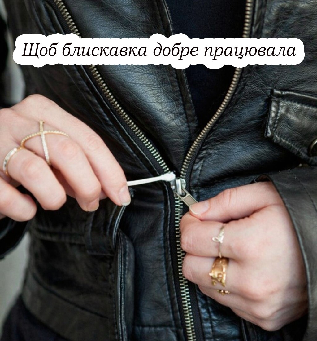 Якщо блискавка заїдає — це ще не привід викидати річ або бігти в ремонт. У 90% випадків допомагає просте рішення: милом, свічкою або графітним олівцем змастити зубчики, і блискавка знову працює як нова ✅