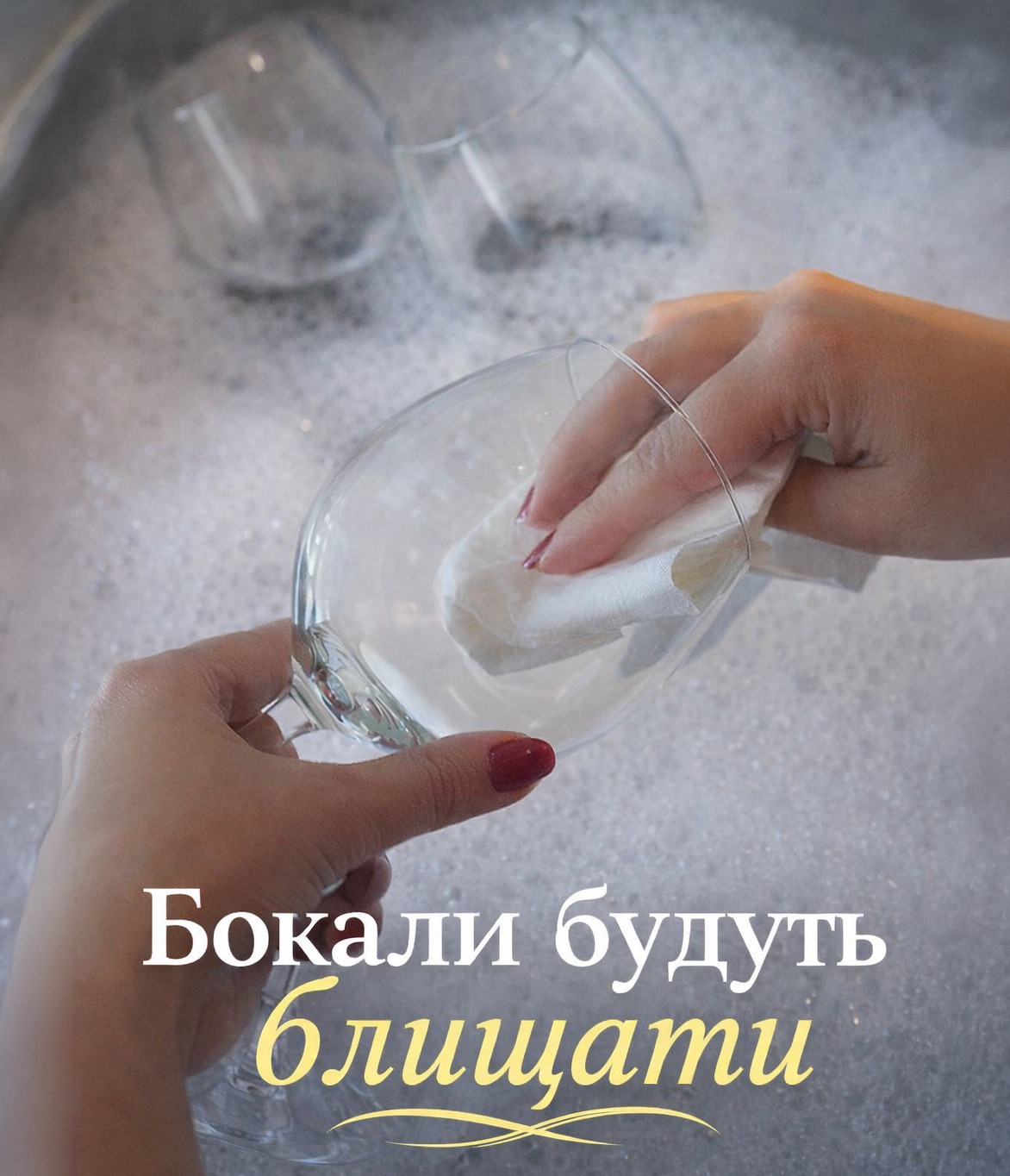 Якщо залишити бокали сохнути самостійно, на них можуть з’явитися водяні плями. Найкраще одразу насухо витерти їх серветкою з мікрофібри.