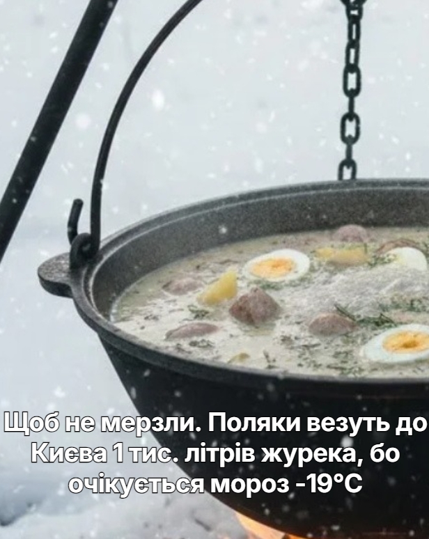 «Ми веземо до Києва 1 тис. літрів польського журека, щоб у понеділок (2 січня — ред.), коли буде −19 °C, безоплатно роздати його людям як жест підтримки й солідарності. Це гуманітарна та культурна ініціатива — обмін теплом між нашими народами», — зазначила активістка.