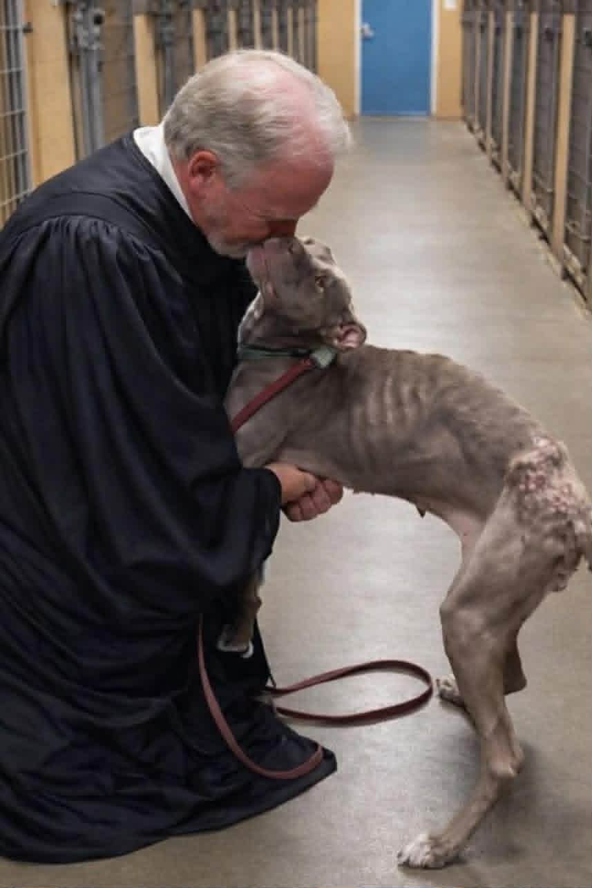 Він щойно виніс один із найсуворіших вироків у своїй кар’єрі. Не тому, що справа була найскладнішою. А тому, що вона була найжорстокішою. Суддя Мартін Воллес — тридцять років у мантії, бездоганна репутація, незламна принциповість — тієї ночі не зміг заснути. Справа Фінна, пітбуля, якого знайшли прикутим у порожній квартирі й покинутим на тижні без їжі та води, залишила в ньому важкий, глухий біль. Він бачив багато. Але світлини собаки, виснаженого до кісток, проникли просто в серце. Того дня він призначив винному максимальне покарання. Говорив спокійно, рівно. Та всередині не було відчуття справедливості. Лише біль. Він не поїхав додому. Не зняв мантію. Сів у машину й вирушив до притулку, куди доправили Фінна. — Він дуже слабкий, Ваша честь, — тихо сказала ветеринарка. — І боїться всіх. Суддя підійшов повільно. Фінн лежав, згорнувшись у кутку клітки, з поглядом, що ніби вже ні на що не чекав. Мартін опустився навколішки. Сказав лише: — Привіт, друже. Я Мартін. Я той, хто почув твою історію. Фінн повільно підвів голову. Затремтів. Зробив невпевнений крок… потім ще один… І впав йому в обійми. Він почав лизати обличчя — повільно, відчайдушно, ніби боявся знову втратити тепло. А суддя Воллес, найсуворіша людина в залі суду, заплакав. Тихо. Без захисту. Без слів. — Він не припиняє вас лизати, — здивовано прошепотіла ветеринарка. Мартін притис собаку міцніше й усміхнувся крізь сльози: — І я ніколи від нього не втомлюся. Подивіться на нього… За два місяці Фінна було не впізнати. Притулок отримав десятки заявок на всиновлення. Кожен хотів дати йому дім. Але всі знали, куди він поїде насправді: додому — до людини, яка зробила більше, ніж просто винесла вирок. Він зробив щось рідкісне й глибоко людяне: він почув біль і відповів на нього любов’ю. Бо іноді найсправжніша справедливість не проголошується в суді. Вона народжується тихо — коли ти стаєш навколішки перед тим, кому просто потрібно, щоб його побачили. І нарешті полюбили.
